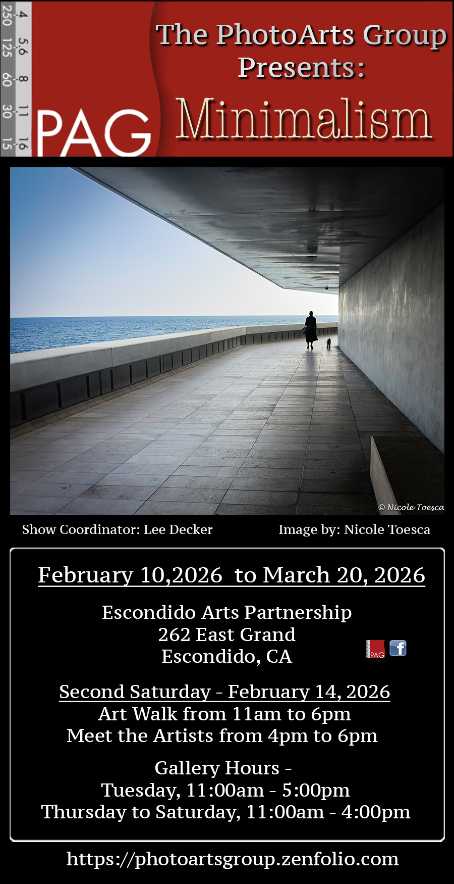 Current Exhibitions 2026 Exhibition Schedule Escondido Arts Partnership Exhibit In the Expressions Galleries Third Annual Dames on Grand In the InnerSpace Gallery Gallery Too Studio Artists (art above by Martita Foss) Judith Preston, William Gullette,Martita Foss, Robert Barry,Mary Jhun, and Ted Washington